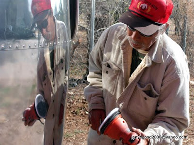 Ok, this is where I begin to learn how to add pictures to my blog...so here goes. These are pictures of some of the art we do, some of where we live, and some of the life around the house. This is Angel pointing to the side of our Airstsream to show a business in California where a broken window was about to be replaced. We also spend a lot of time dedicating our time to polishing this Airstream. Thats Angel using an orbital polisher- but we also have the secret weapon (Cyclo Polisher)