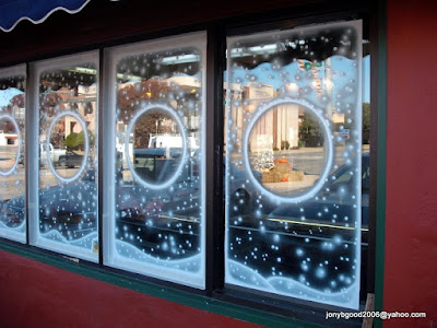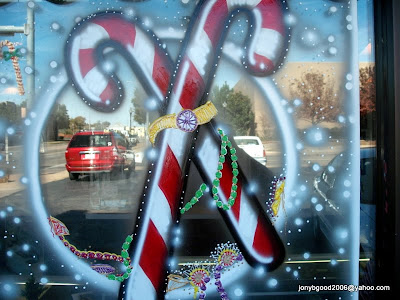 Ok - I am going to try one more time to find some recent works...here goes. These are some christmas windows we did for Crown Jewelry in downtown (if you could call it downtown) Altus Oklahoma. They have been changed to Valentines since then. I swear, they have the coolest looking windows in town. I must be the only active public artist here. Oh..I know -the towns peoples' minds have been taken over by aliens selling vinyl decals to them...and now everybody is a ZOMBIE for it.