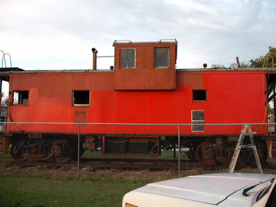 Red for train....This is a caboose that is on display down in Olustee that we just started. The pros and cons...it is in a fenced in area that is a little too tight for movement.