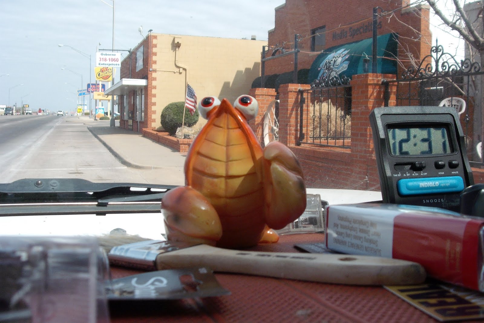 Meanwhile, because the wind is so unpredictable in this part of Oklahoma, we have held off installing the right shadows on the wall - below the painted awnings to REALLY make them appear to actually be there. Whats missing? ...well right at the corner of the wall is where the name of the place will go.