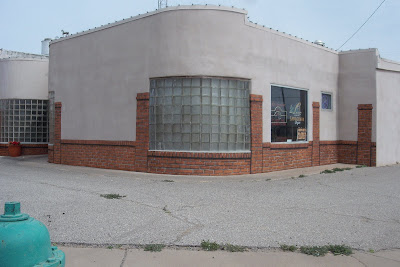 Right there - up above the large window at the corner- is where we will be installing the title of the business. On either side (going out from it) will be these 'airbrushed brick' outcroppings that are stone arches. Just a minute-