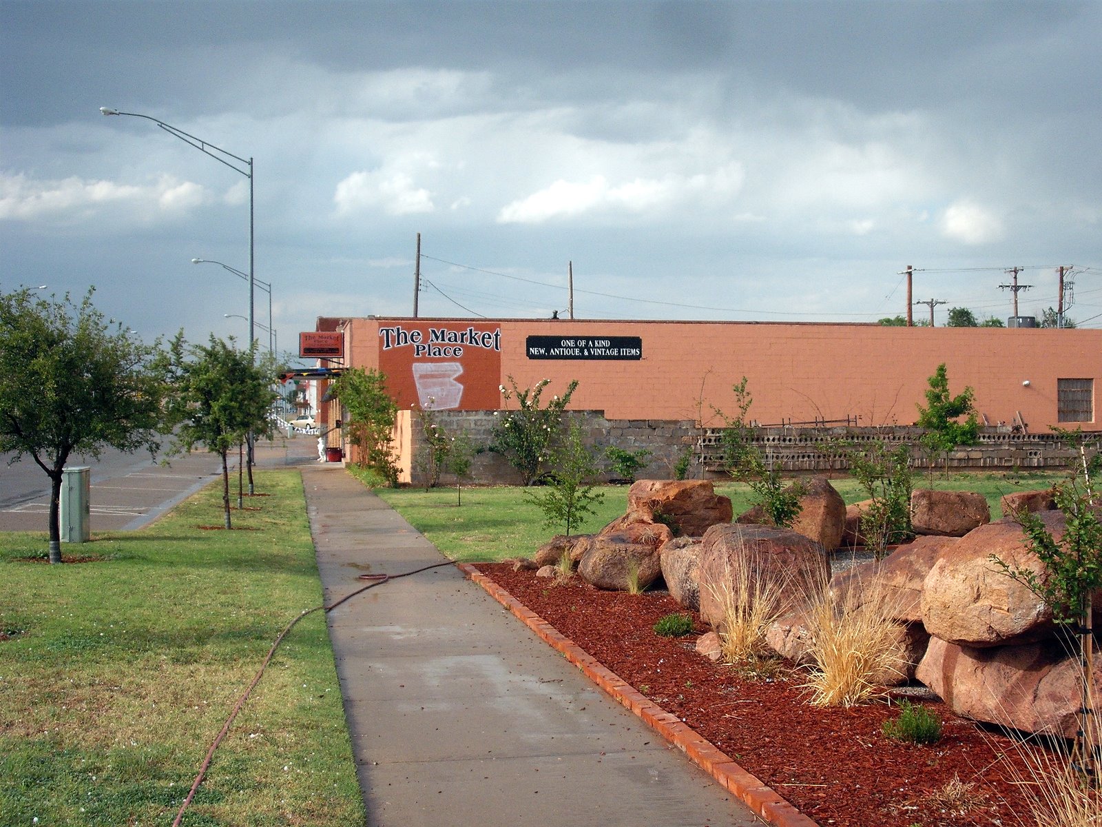 Hi Blogger folks, today we got a little bit of hail, so I freaked a little about coming home to the airstream and it being pitted with dents...but alas! No dents. In other news, I did an old tag restoration for Paul Wilmes (above) and then now he wants me to deck out his building...so more jobs are on the way! Yay! The Market Place is still in 'process' and you can see the hump backed trunk has been prep with white paint. I will show more progress pictures later. Still waiting for the storm system to move over us.