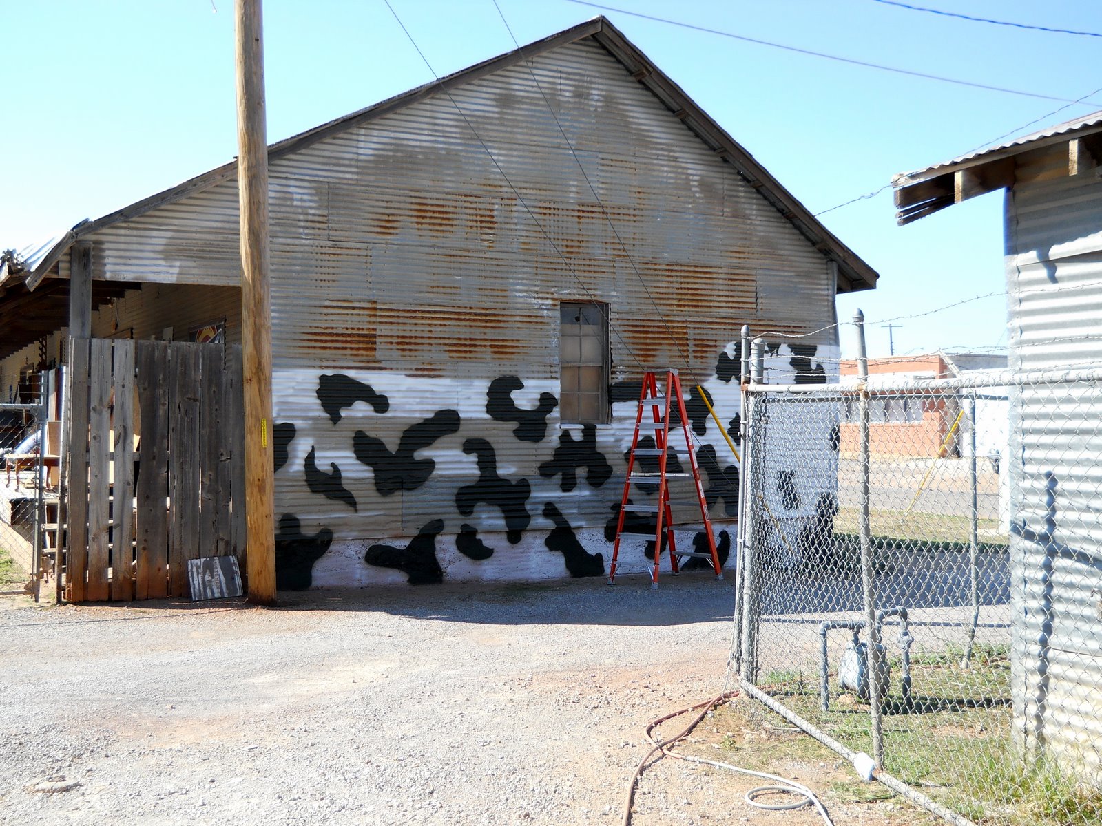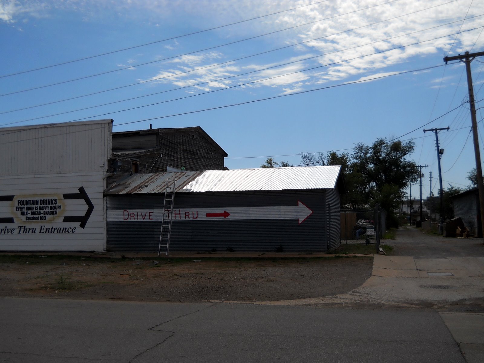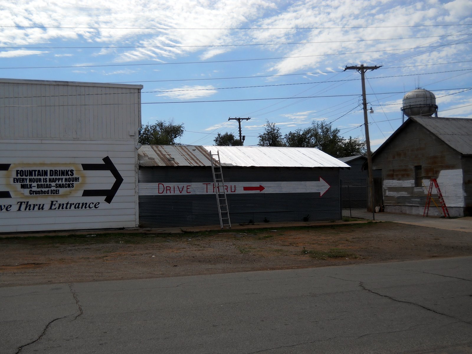 Today I got out and made a fresh money deal with the owner and went to work upgrading the rear of this drive through place. Notice the roof getting a fresh coat of aluminum oil Paint.