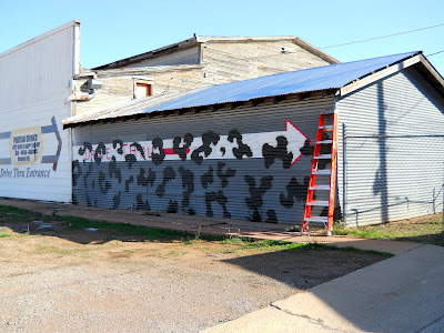 This looks a little disturbing to see a painting in the works...but I decided to use camouflage as a tool to fill in all these areas that hopefully the cars will be passing through.
