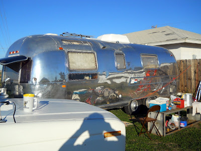 Now that the airstream has been moved, I am now able to polish both sides along with the top. We have not polished for a while, so this is sure to be a workout. Lots of rags, a cyclo polisher machine and my arms along with an aggressive rubbing compound and some aluminum polish all make the ingredients of this job.