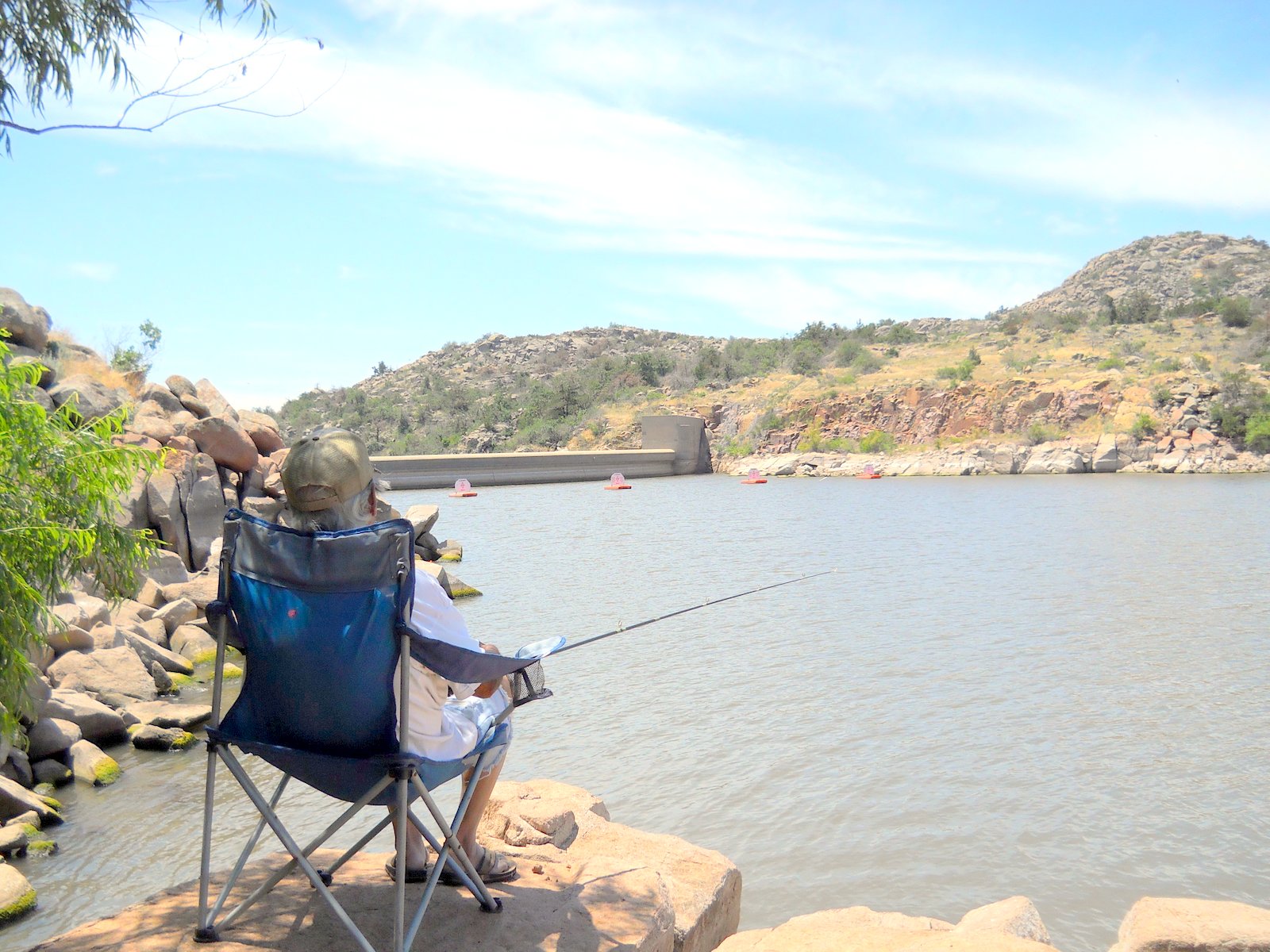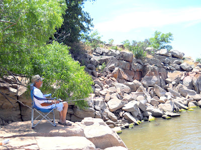 We made a summer time trip up to The quartz Mountains one morning and found a quiet place---withen minutes we scored this catfish with chicken liver bait.