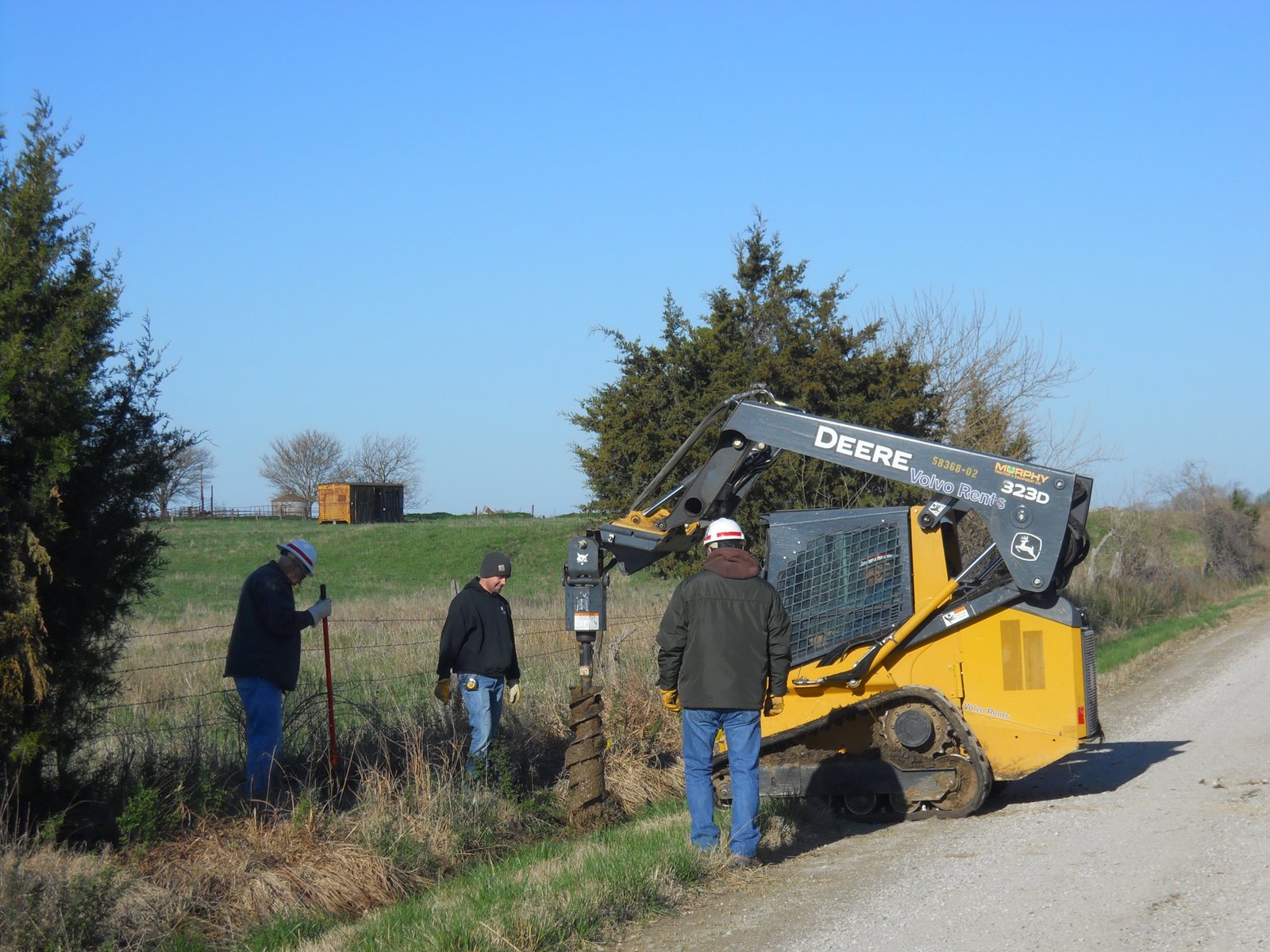 Allen, the Park Ranger looks on as Mannie digs holes for the signs to be erected.